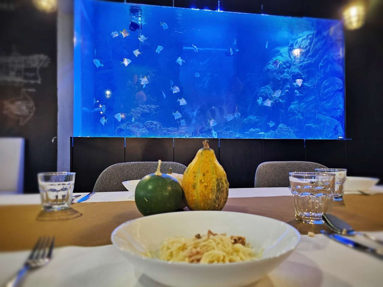 Przede wszystkim Akwarium morskie buduje nastrój, a także zachwyca swoją kolorystyką. Ryby i koralowce przyciągają uwagę, chociaż stanowią jedynie tło dla doskonałej kuchni. To element wystroju, który podnosi standardy estetyczne, ale również tworzy unikalny klimat.